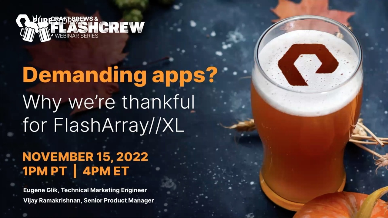 Please join us for Craft Brews and FlashCrew, our monthly webinar series featuring practical tips for hands-on IT pros! We’ll share a few tech updates, applications, and best practices to do more with your Pure solution—along with your chance to enjoy some craft beer after the session.